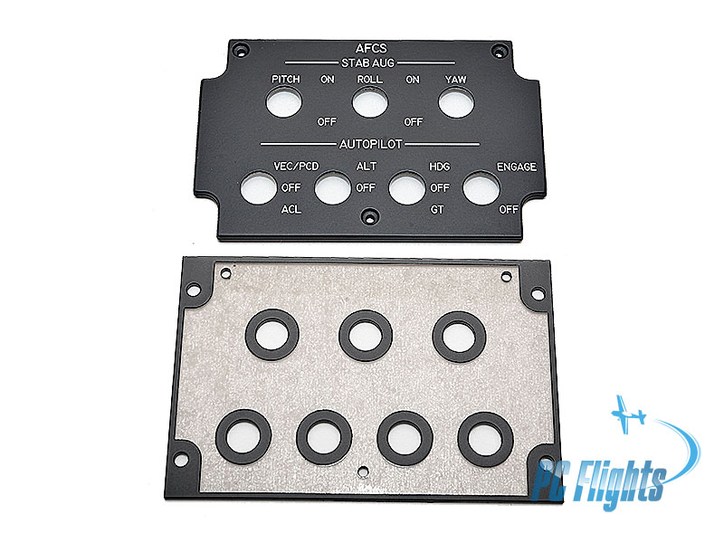 This is flight simulator replica of F-14 "Tomcat" AFCS Control Autopilot panel home cockpit module. It consists of two layers and is ready for backlight. Both layers were cut on CNC routing and precision laser machines and painted with two layers of durable industrial grade RAL-9005 (Jet Black) paint. |