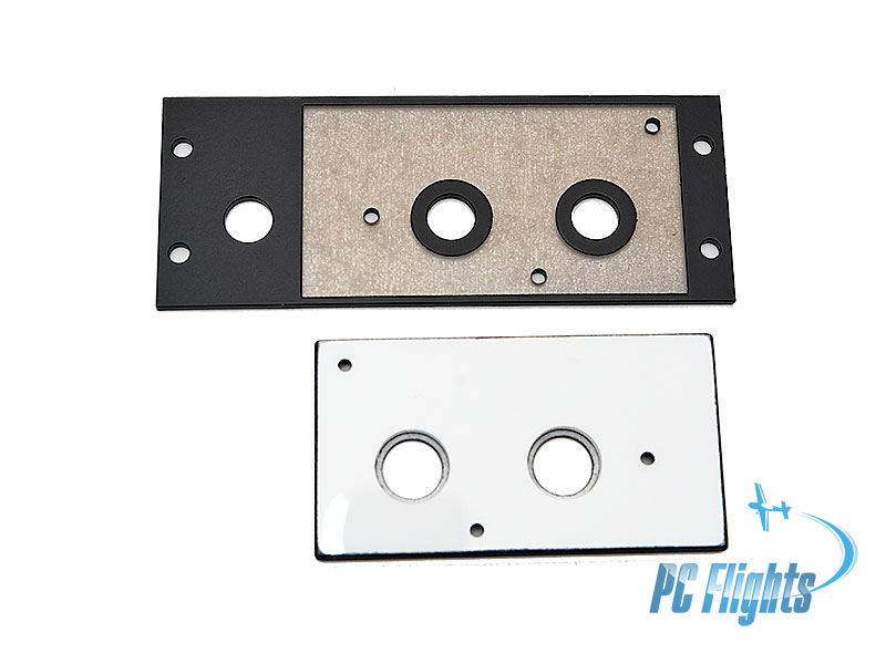 Panel includes black screws (not DZUS) which connect first and second layers. As on real F-14 flight cockpit modules and panels our upper layer outer edges and rectangular annunciator cutouts are finished on routing machine and have rounded edges, as well as all round openings (for buttons, switches, etc.) have hidden recesses to mask switch/button mounting nuts and washers. |
