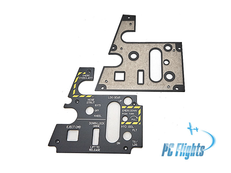 This is flight simulator replica of F-14 "Tomcat" Landing Gear Control panel home cockpit module. It consists of two layers and is ready for backlight. Both layers were cut on CNC routing and precision laser machines and painted with two layers of durable industrial grade RAL-9005 (Jet Black) paint. |