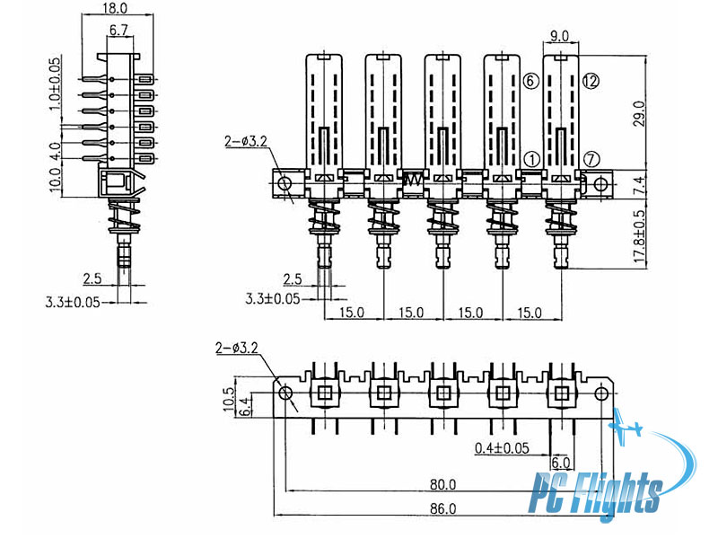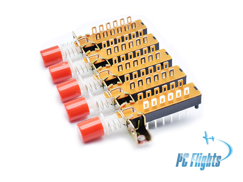 Interlock Push Button Switch Piano Type 12 Pin 5 Raw configuration is a common component in electronics and appliances, often used for multi-position control where only one button can be engaged at a time. Good for using in Displays Control Panel and Air Conditioning Control panel in F-14 "Tomcat" home cockpit. |